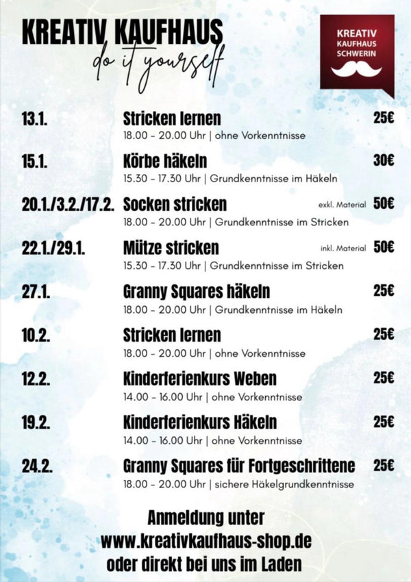 Neu dabei: Kinderkurse in den Winterferien 🧶✨ und frische Formate wie Mütze stricken. Ein echter Klassiker zur Osterzeit ist natürlich wieder am Start: Körbe häkeln – handgemacht, praktisch und wunderschön.